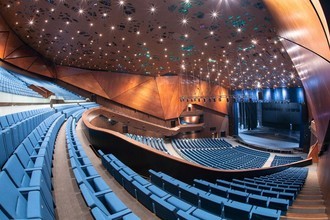 Для посетителей в фойе работает кафе, где можно выпить кофе, чай и другие напитки, подкрепиться аппетитными снеками или присесть на диван в ожидании начала мероприятия.